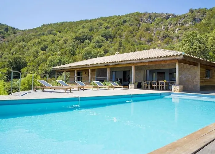 De 5-slaapkamer Villa Palombaggia is gesitueerd op circa 5 km van het Strand van Palombaggia en biedt toegang tot bezienswaardigheden in de omgeving.